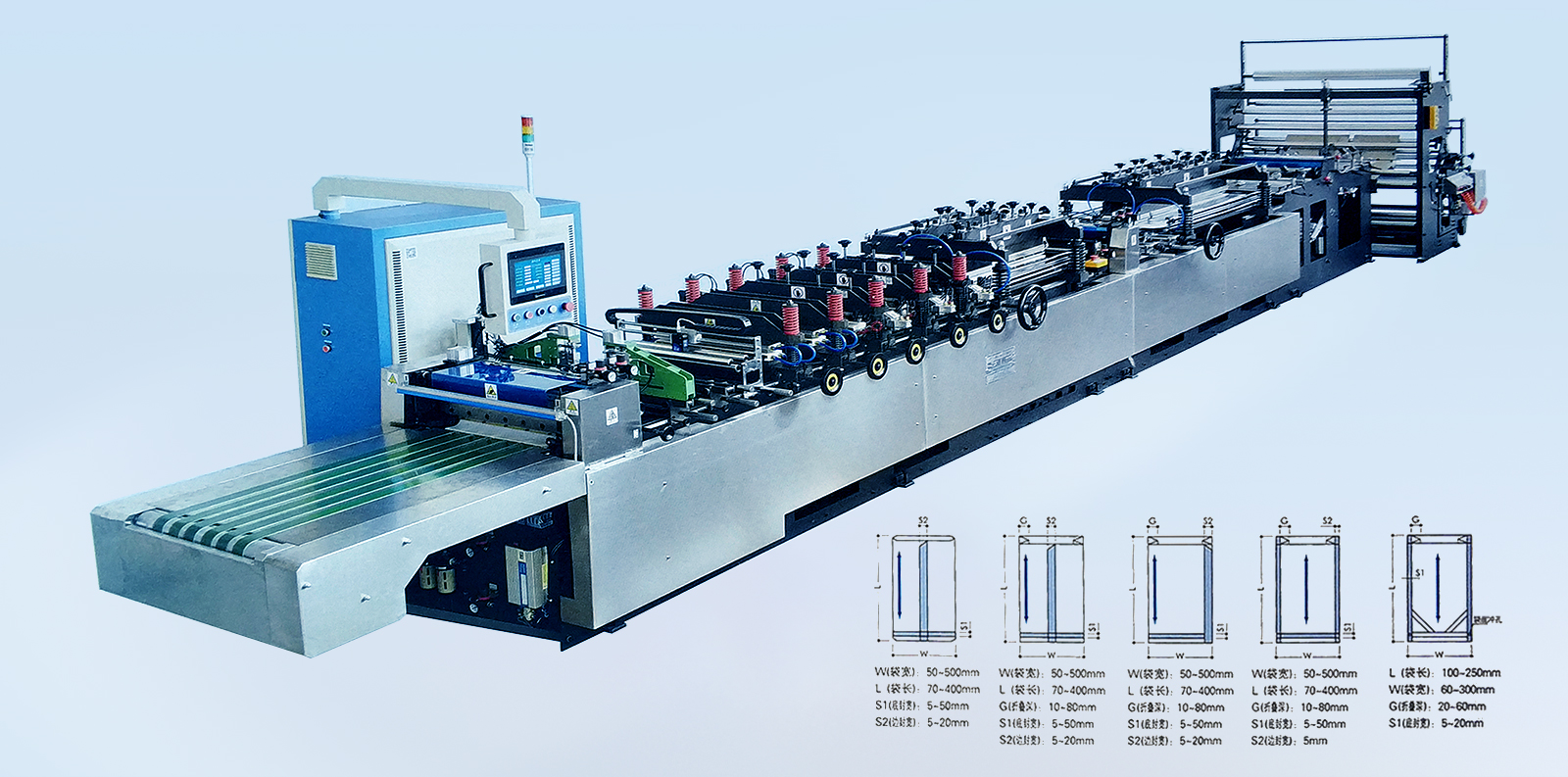 YSZD-400B Ⅱ中封、三邊封、四邊封高速全自動制袋機 YSZD-300/400/500ZF中封、側(cè)封、四邊封高速全自動制袋機 YSZD-500ZF中封、側(cè)封、四邊封高速全自動制袋機 YSZD-500/600/700/800/1000H三邊封高速全自動制袋機 YSZD-600C無接縫站立袋三邊封、站立袋高速全自動制袋機 YSZD-500HK三邊封、站立袋、拉鏈袋、無接縫站立拉鏈袋、儲料架高速全自動制袋機 YSZD-600HB三邊封、站立袋、拉鏈袋高速全自動制袋機 YSZD-600HK三邊封、站立袋、拉鏈袋、無接縫站立拉鏈袋高速全自動制袋機 YSZD-600HK Ⅰ上下圖案跟蹤三邊封、站立袋、拉鏈袋、無接縫站立拉鏈袋高速全自動制袋機 YSZD-600HK Ⅱ CCD視覺定位裁切三邊封、站立袋、拉鏈袋、無接縫站立拉鏈袋高速全自動制袋機 YSZD-800HK三邊封、站立袋、拉鏈袋、無接縫站立拉鏈袋高速全自動制袋機
